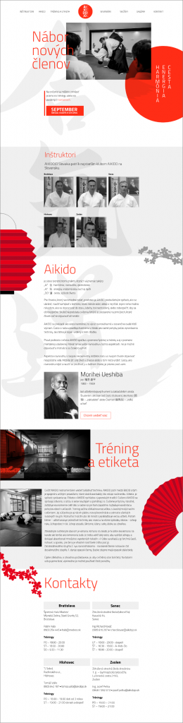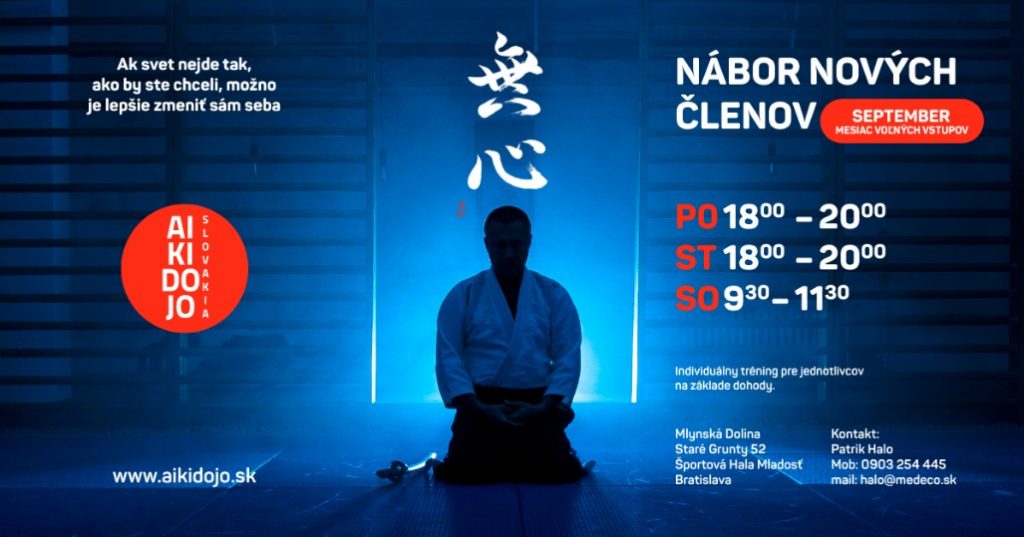 Nie, koncept sa nezmenil, ale viac trénujúcich ľúdí pomáha udržiavať dojo v prevádzke. Napadlo mi, že by to chcelo nejaké farby a tak sme nafotili Paťa ako medituje pred foťákom… Chcel som do toho dostať trošku tajomna, ktoré v sebe aikido ukrýva. Tá originál kaligrafia, ktorá visí za Paťom na stene v čajovni ostala samozrejme tajomná tak sme ju vytiahli “hore” a znamená to “myseľ bez mysle”. No a na doplnenie toho japonského fílingu, sme si požičali zopár výrokov od japonského zenového majstra Šunmjó Masuna. A pre tých, ktorých to zaujíma, odporúčam prečítať si jeho knihu Umenie obyčajného života…